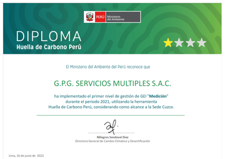 Por implementación del Primer Nivel en GEI «Medición» durante el periodo 2021, Utilizando la herramienta Huella de Carbono Perú